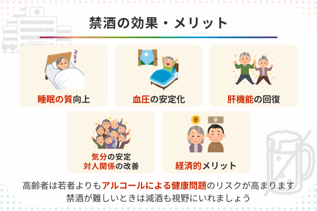 禁酒による健康改善の具体例も多岐にわたります。例えば: