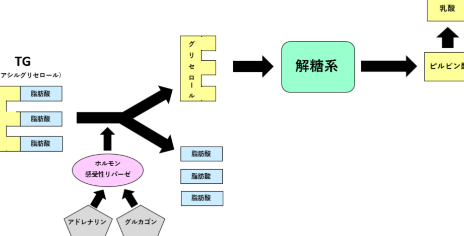 - 脂肪の分解: 脂肪細胞が分解され、脂肪酸とグリセロールに変わります。この過程は、エネルギーが必要な際に起こります。
