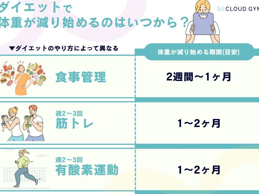ダイエットを始めると、さまざまな変化が体に現れる。多くの人が気にするのが、どのくらいの期間で体重が減るかということ。しかし、体重の減少ペースは個人差が大きい。最初の1ヶ月は特に体重が落ちやすい傾向があるため、モチベーションを保つ上でも重要だ。