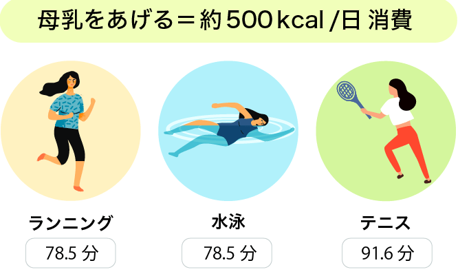 授乳期、私たちの体は特に多くのカロリーを消費する。母乳を作るためには約500カロリーを消費することが知られている。この消費量は以下の要因に影響される。