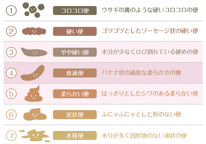 - 週間の排便回数:通常、1日に1回の排便が一般的で、週に7回。