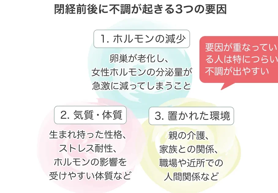 ホルモンバランスの変化は更年期において特に顕著です。エストロゲンとプロゲステロンの減少が主な要因です。以下の点を考慮する必要があります。