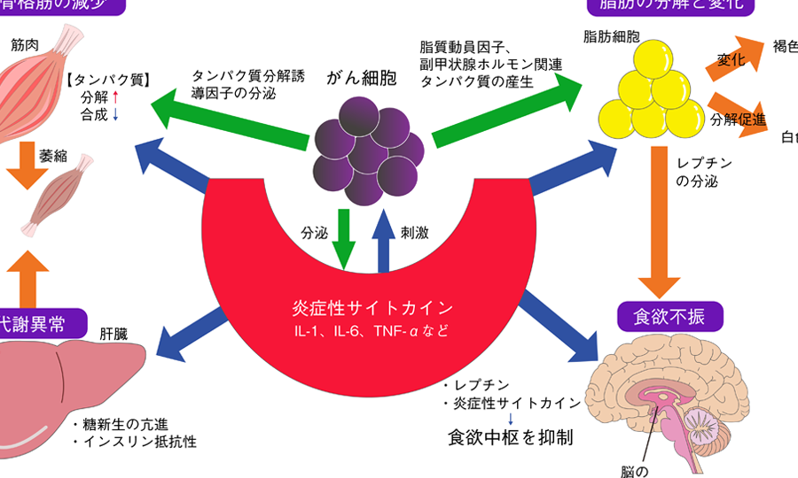 - エネルギー消費の増加: ガン細胞は正常な細胞よりも大量のエネルギーを要求する。これにより体がエネルギーを消費しすぎてしまう。