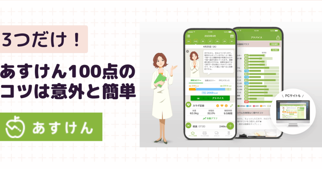 あすけんの得点システムは、ユーザーが健康的な食生活を維持する手助けをするために設計されています。このシステムは、食事や運動の記録を基に得点を算出し、ユーザーの進捗を可視化します。