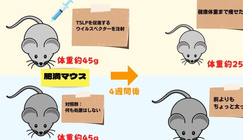 - 脂肪代謝の促進: TSLPによる脂肪代謝の向上が、結果的に体重の減少につながります。