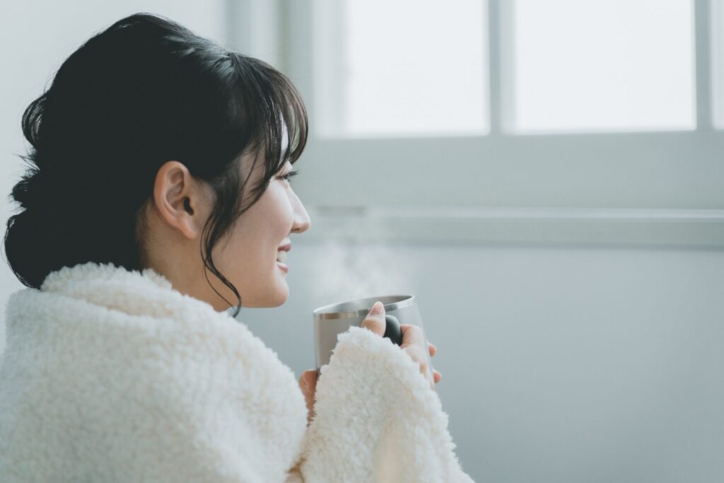 - 定期的に動く。少し外に出て歩くことや、軽いストレッチをすることで、血流を改善し寒さを和らげます。