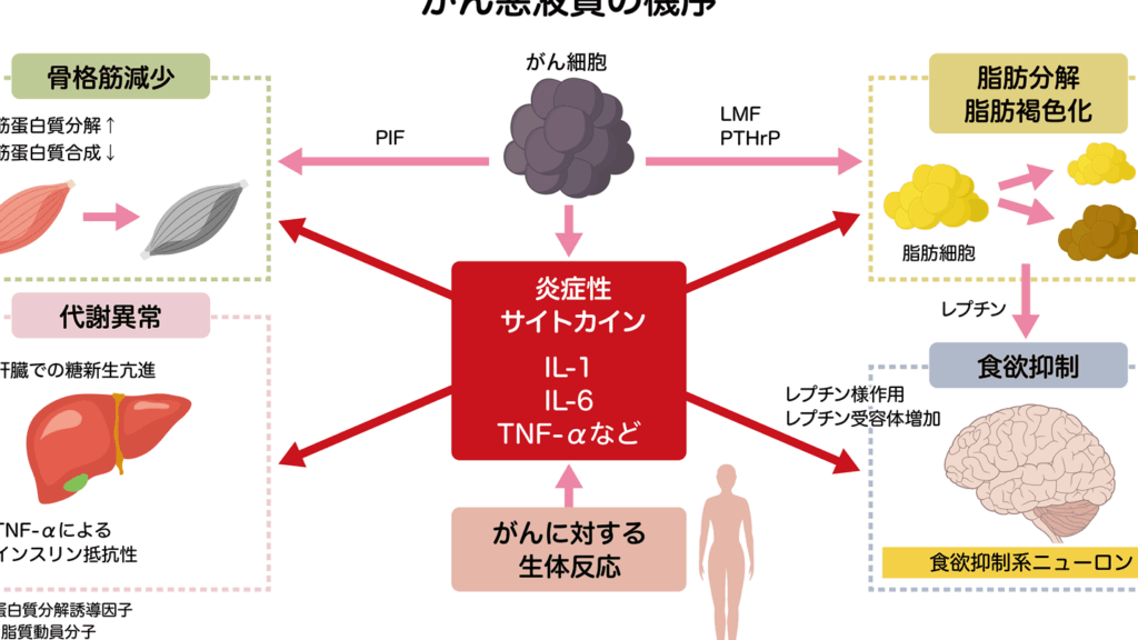 - ストレスと心理的要因: がん治療に伴う精神的ストレスも、食事や栄養摂取に影響を及ぼすことがあります。
