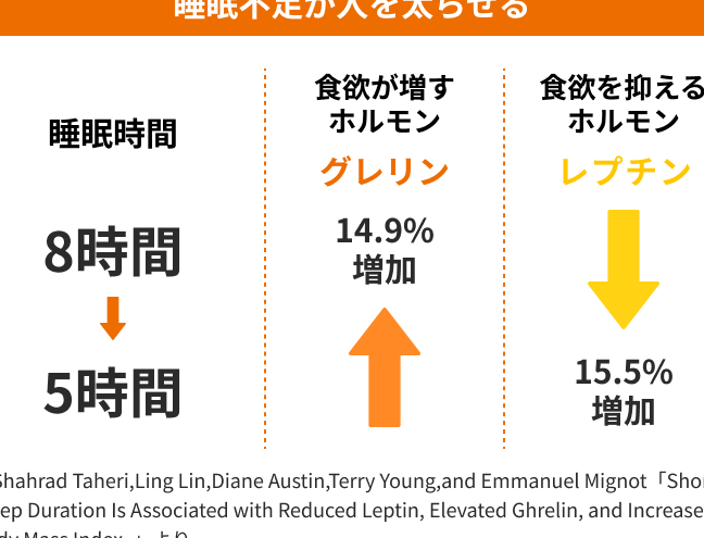 - レプチン: 食欲を抑えるホルモンで、睡眠不足の際に減少し、食欲が増す可能性がある。