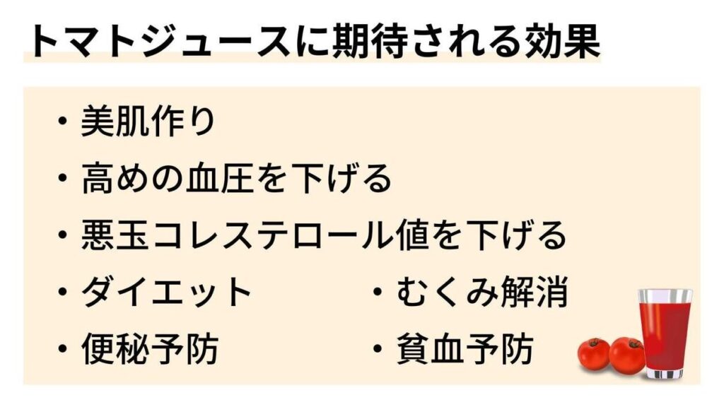 これらの栄養素により、トマトジュースは健康的な飲み物として位置付けられています。