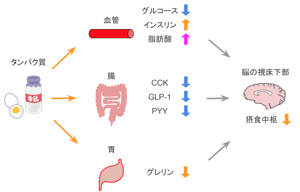 - グレリン: 食欲を刺激するホルモンですが、高タンパク食によってその分泌が抑えられることがあります。