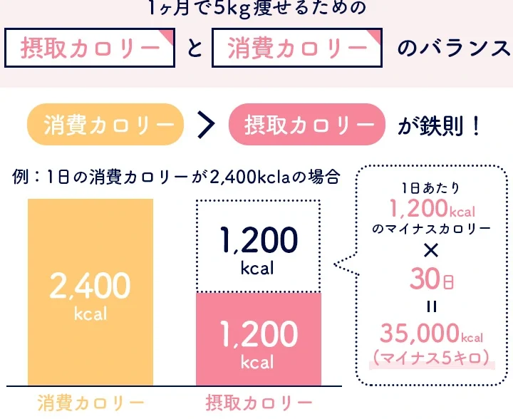 - 1キログラムの脂肪を燃焼させるためには約7,000カロリーの赤字が必要。