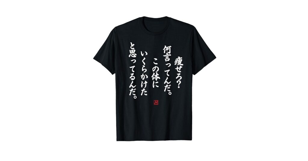 - デザイン: 他の商品は一般的なロゴやキャッチフレーズが多く見られる一方、「痩せろ 何言ってんだ tシャツ」はユニークなアートワークと明確なメッセージが融合しています。