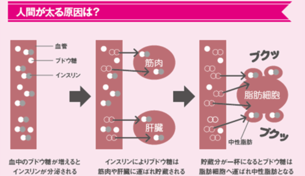 - インスリン反応: 糖質を摂取すると血糖値が上昇し、それに伴いインスリンが分泌されます。このホルモンは脂肪細胞への脂肪蓄積を促進させるため、高糖質食品ばかり摂取すると体重増加につながる可能性があります。