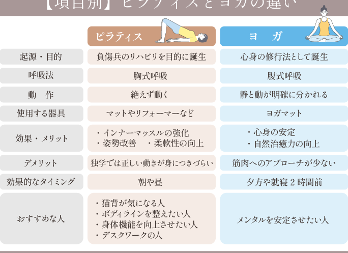 | 目 | ピラティス | ヨガ |