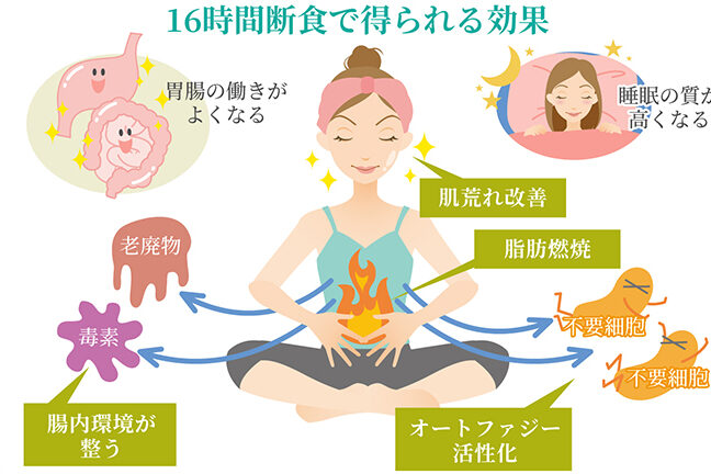 16時間ファスティングでは、一定期間飲食を行わないため、自ずとエネルギー摂取量が減少します。具体的には以下のような影響があります:
